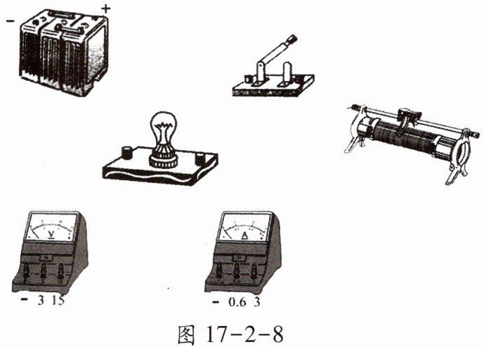 (1)请你用笔画线表示导线,将图 17-2-8 所示的元件连接成实验电路.