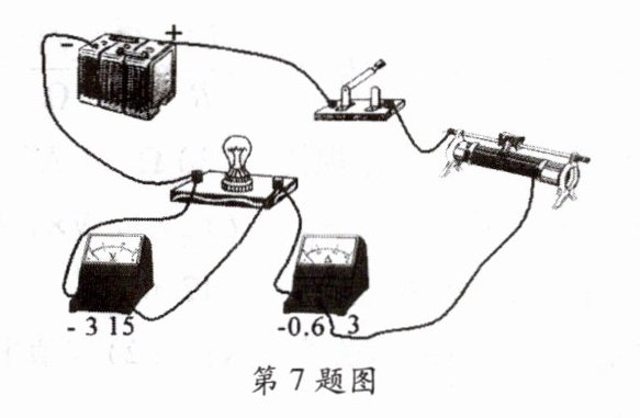 7. 在“测定小灯泡电功率”的实验中,已知电源电压为 $6V$,小灯泡的额定电压为 $3.8V$,小灯泡的电阻约为 $10Ω$,滑动变阻器上标有“$20Ω$ $1A$”字样.