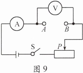 15. 如图9所示是电学中常见的电路图,在A、B两点间分别接入下列选项中加“”的元件并进行对应实验,有关描述正确的是(