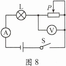 13. 如图8所示的电路中,电源电压为4V,电流表的量程为“$ 0 \sim 0.6A $”,电压表的量程为“$ 0 \sim 3V $”,小灯泡标有“$ 2.5V \ 1.25W $”字样(灯丝的电阻不变),滑动变阻器上标有“$ 20Ω \ 1A $”字样. 闭合开关,在保证电路各元件安全的情况下,下列说法正确的是(