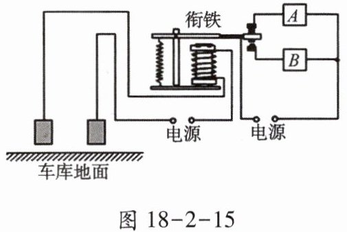 13. 小英看到某小区车库积水造成大量财产损失的新闻后,设计了如图所示的车库积水自动报警器. 图 18 - 2 - 15 中 A、B 位置可以安装电铃或 LED 灯,车库没有积水时,LED 灯亮;车库有积水时,左侧控制电路接通,电磁铁通电,具有