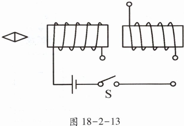 11. 如图 18 - 2 - 13 所示,请按要求连接电路,使得开关 S 闭合后,两个通电螺线管相互吸引;标出小磁针静止时的 N 极.