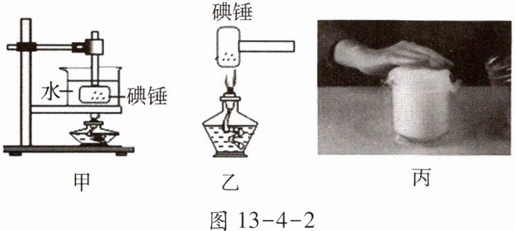 9. 小明在探究物态变化的实验中,设计了如图13-4-2所示的两种探究“碘的升华”的实验方案. 实验之前,查阅资料得知:酒精灯火焰温度约为500℃,标准大气压下碘的熔点为113.5℃.