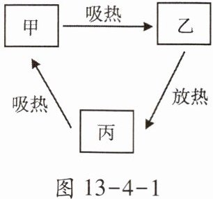 8. 固态、液态和气态是物质常见的三种状态,某物质通过放热、吸热在甲、乙、丙三种物态之间转化,如图13-4-1所示,其中甲为