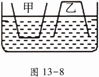 15. 如图13-8所示,将甲、乙两个杯子放入水槽中,甲内有水,乙倒扣入水中,然后对水槽加热,则甲