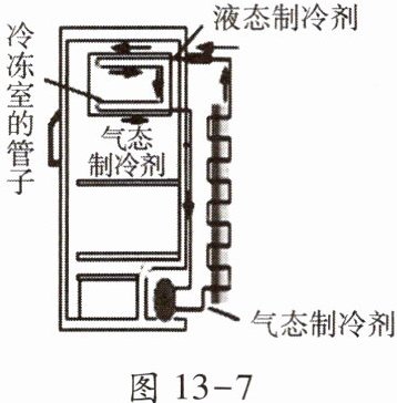 12. 异丁烷和甲基丙烷作为新的制冷剂,已经代替氟利昂成为电冰箱中新的热量“搬运工”. 图13-7是冰箱制冷剂循环路线示意图,制冷剂在冷冻室的管子里发生的物态变化名称是