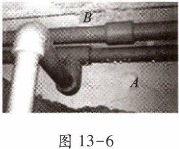 11. 小明洗澡时,发现浴室里充满“白气”,洗完澡后发现水管A上布满水珠,水管B上完全见不到水珠,如图13-6所示.