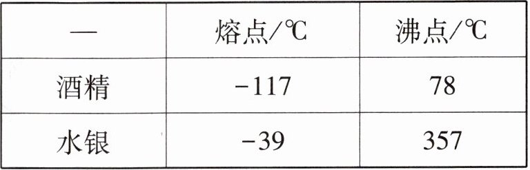 温度计.(均选填“酒精”或“水银”)|—|熔点/℃|沸点/℃|