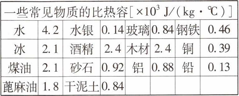 |一些常见物质的比热容[$× 10^{3}J/(kg\cdot^{\circ}C)$]|