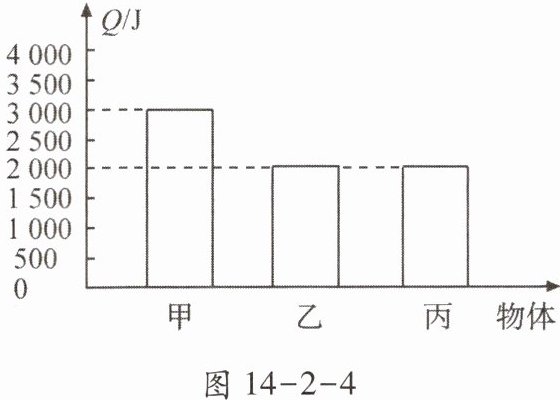 4. 甲、乙两物体质量都为 $1kg$,丙物体质量为 $2kg$,三个物体温度都升高 $1^{\circ}C$,吸收热量如图14-2-4所示. 以下说法正确的是(