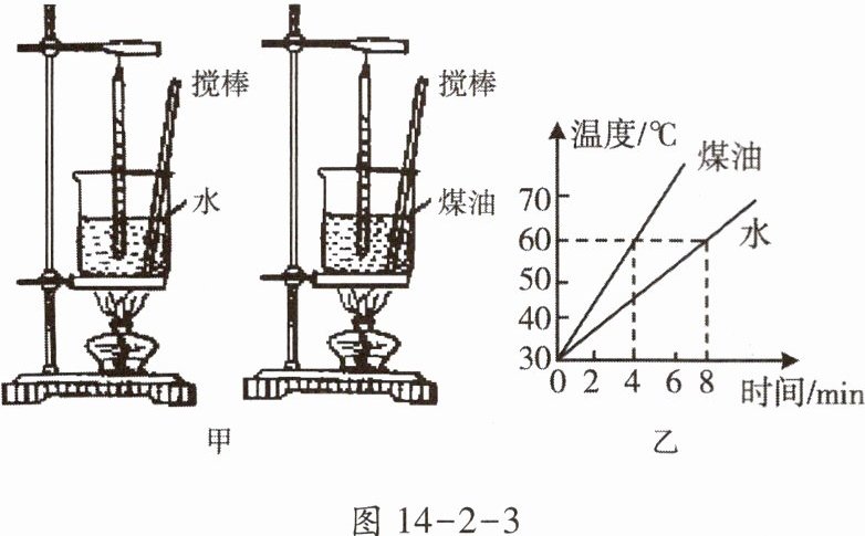 2. 如图14-2-3所示是比较水和煤油吸热升温特点的实验装置.