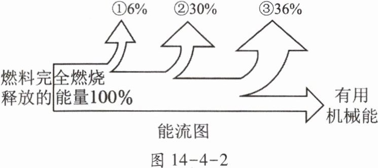 5. 汽车是现代生活中最常见的一种交通工具,如图14-4-2是某汽油机的能量流向图。下列有关说法正确的是(
