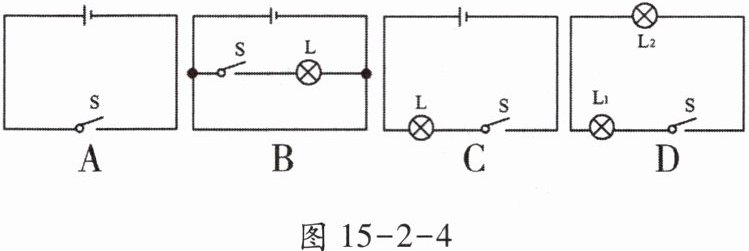 5. 在如图 15 - 2 - 4 所示的四个电路中,符合电路的基本组成且连接正确的是(