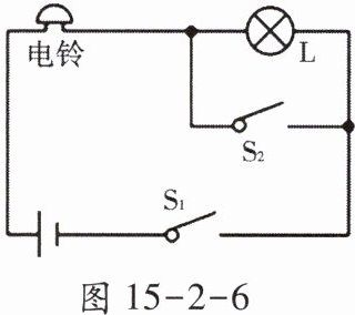 7. 如图 15 - 2 - 6 所示的电路,闭合开关 $ S_1 $ 和 $ S_2 $ 后,下列分析正确的是(