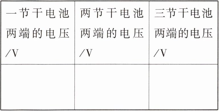 |一节干电池两端的电压/V|两节干电池两端的电压/V|三节干电池两端的电压/V|