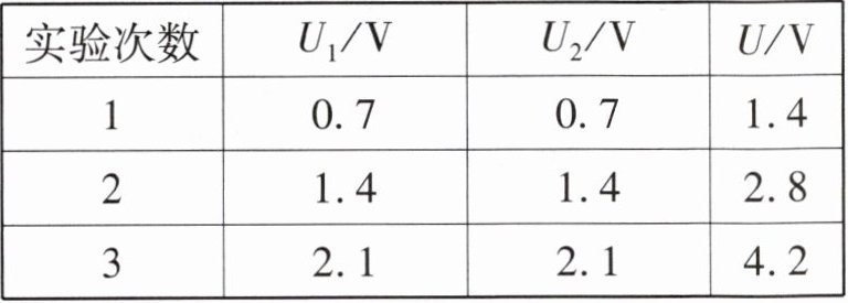 | 实验次数 | $U_1/V$ | $U_2/V$ | $U/V$ |