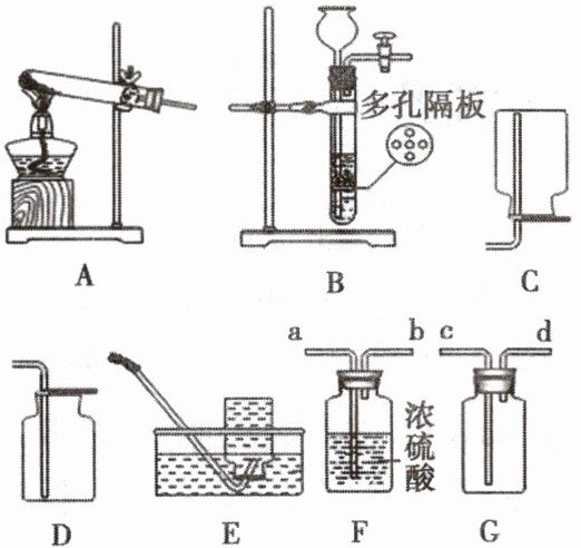 。(3) 某氢气中混有少量的水蒸气,欲使用 F、G 装置除去少量的水蒸气并收集氢气,则装置的连接顺序为