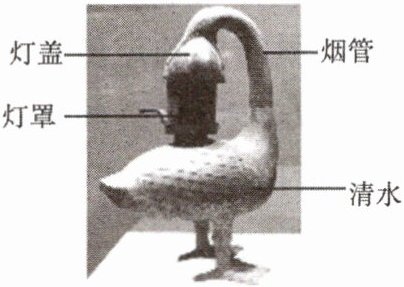 中国古代很多发明创造与化学工艺有关。西汉海昏侯墓出土的青铜雁鱼灯造型优美,设计精妙,其剖面图如图所示。雁鱼灯的大雁脖颈可将燃烧产生的废气引入水中,以减少对室内环境的污染。《汉书·地理志》中记载:“高奴县有洧水可燃”(注:“高奴”为地名,“洧水”指的是石油)。如果雁鱼灯采用洧水为燃料,燃烧产生的废气中含有的污染性气体会与水反应生成$H_2SO_3$使水显酸性,故需要经常换水。