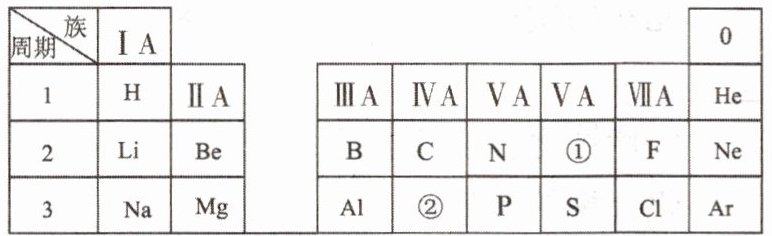 6. (2024·济宁)下图是教材中元素周期表的一部分,表中的数字编号①和②各表示一种元素。
