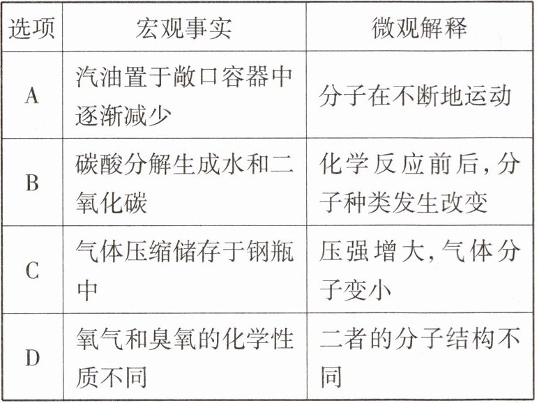 7. (2024·淄博)“宏微结合”是化学学科特有的思维方式。下列对宏观事实的微观解释错误的是 (