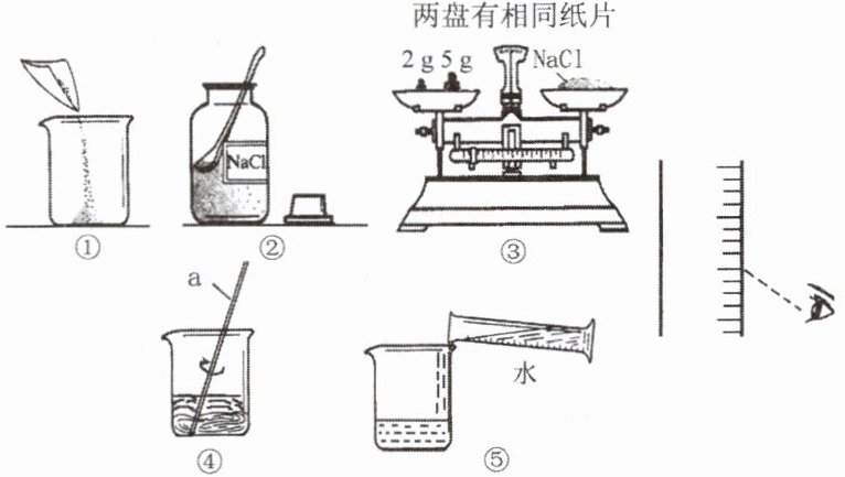 7. 实验室配制质量分数为 10%的 NaCl 溶液,下图是某同学的实验操作过程。
