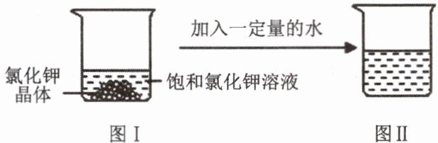 5. 一定温度下,向图Ⅰ烧杯中加入一定量的水(如图Ⅱ所示),所得溶液与原溶液相比,下列判断一定正确的是(