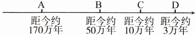 (1)观察上面的示意图,请写出与该示意图中 A、D 两处相对应的古人类遗址。