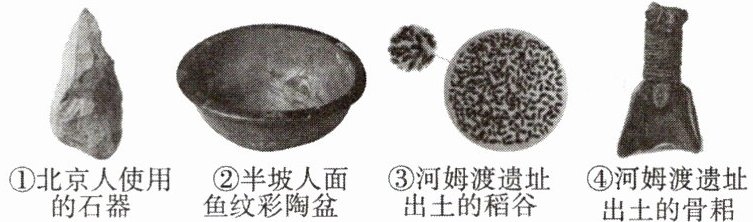 (3)考古发现是了解史前社会历史的重要依据。材料二考古发现的实物中适合研究中国原始农耕时代生产、生活状况的是______(只填序号)