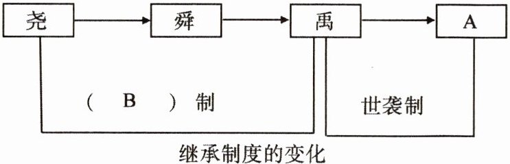 (3)A:启;B:禅让。