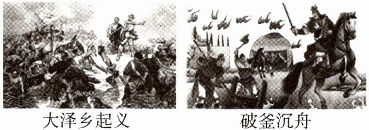 材料二 秦始皇时,有 900 多个贫苦农民被征发去渔阳戍守边境。他们走到半路时,遇上大雨,道路被冲毁,不能按期到达。按照秦法,误期都要处死。他们中的两个小队长,杀死了两个押送军官,领导大家举行起义。