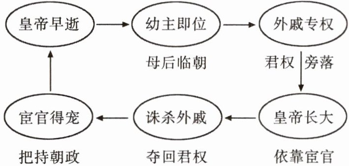 (2)东汉外戚、宦官交替专权。动摇了东汉的统治,东汉王朝走向衰亡。