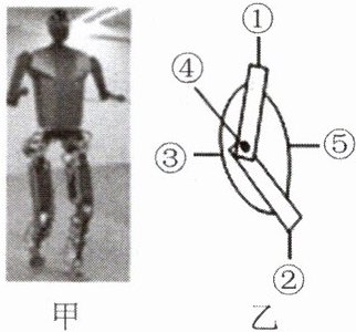 11. 2025年春节联欢晚会上,人形机器人(如图甲)表演了转手绢等节目,让人们了解到人形机器人的先进之处。图乙是机器人下肢部分结构简易模型,下列关于机器人小腿向后抬起的叙述,正确的是(