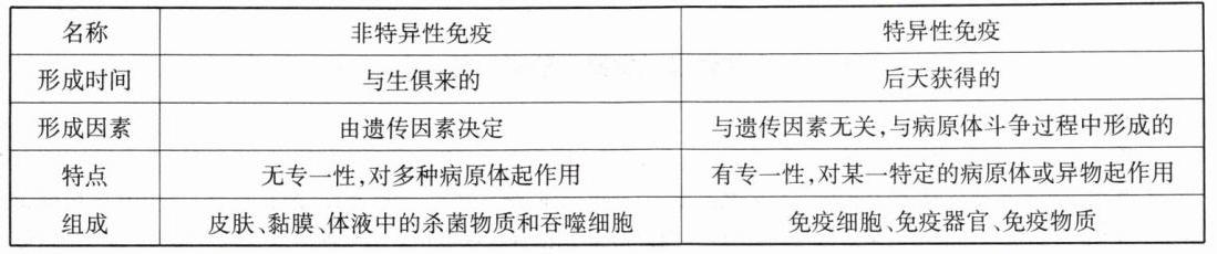 1. 尝试列表比较非特异性免疫与特异性免疫的区别。