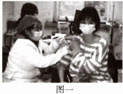 23. 入冬后,李敏出现高烧、咳嗽等症状,经医生检查患上了“甲流”。图一为医院接种疫苗的场景,图二为李敏感染病毒的大致过程图,请运用所学知识,回答下列问题。