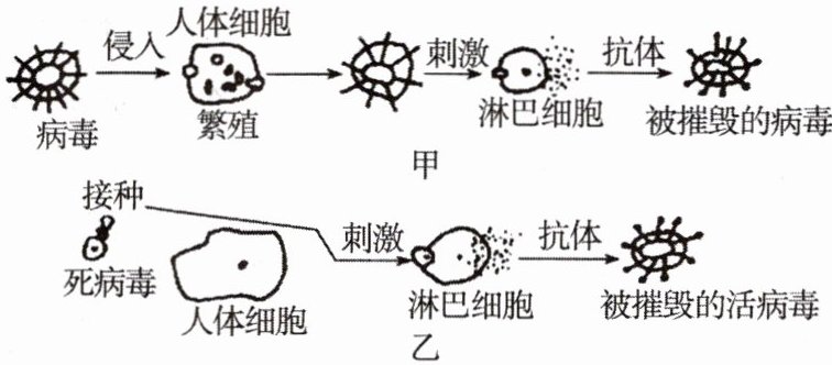 22. 如图甲、乙是人体对某种病毒感染产生免疫力的过程示意图,请分析回答: