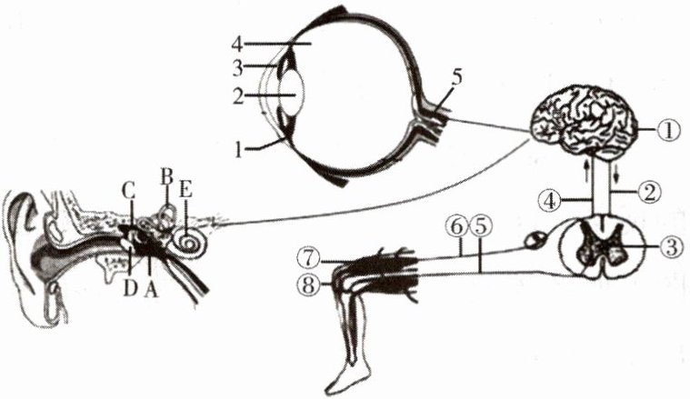 ]______曲度的调节作用。(3)一名同学在逃生过程中不小心伤到膝盖,校医在清理他的伤口时,他立即缩回,请用数字和箭头表示此反射的基本途径:⑧→