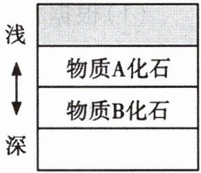 3. 如图所示为一个从未受到破坏的深积岩层的顺序,图中表明其中一层含有化石 A,且 A 从未在其他更深的积岩层出现过,而另一层含有化石 B,据图推测(