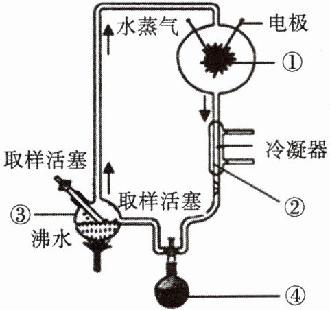 B.②内模拟了原始大气中的水蒸气凝结降雨的过程