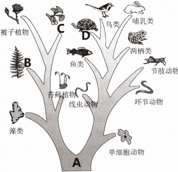 植物。(6) 从进化树中可以看出,生物进化的总体趋势是