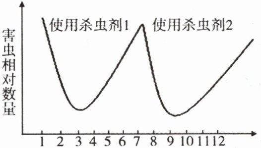 (3) 当喷施杀虫剂 1 时,抗药性弱的甲虫逐渐被淘汰,抗药性强的个体就容易生存下来,将
