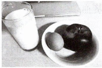 18. 右图为小敏的妈妈在减肥期间的早餐:一杯牛奶、一个鸡蛋、一个苹果。从平衡膳食的角度分析,下列叙述错误的是 (