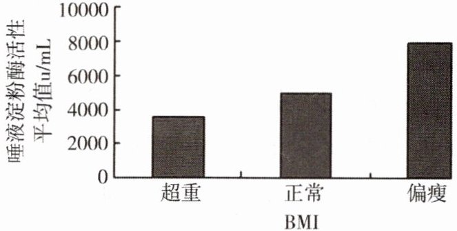 BMI值越小,人体越瘦,唾液淀粉酶活性越强