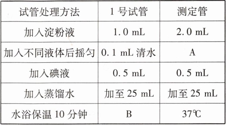 ℃,表格中有一处操作错误,请找出:测定管中淀粉溶液2.0 mL改为1.0 mL
