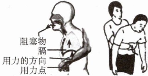 6. 当儿童或成年人因异物阻塞呼吸道时,可采取如图所示的海姆立克急救法进行急救。挤压会导致被救者 (