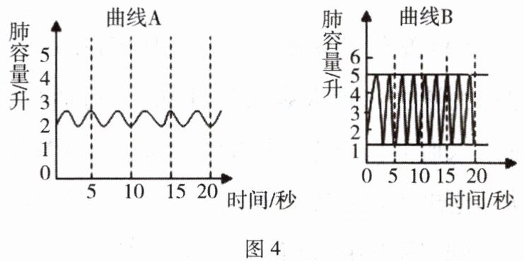(3)图4表示在两种状态下呼吸情况的曲线图,其中表示女排队员们激烈训练时呼吸状态的曲线图是