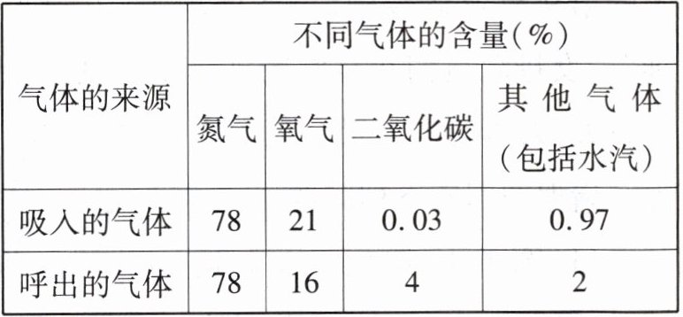 1. (2024年·甘肃陇南)如下表为人体吸入、呼出的气体成分含量变化,呼出气体中的二氧化碳含量明显增加,这些二氧化碳根本来自(