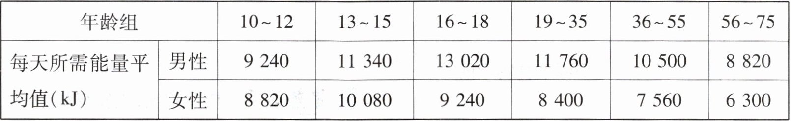 6. 下表中的数据为不同年龄的人每天所需要的能量平均值。根据表格数据分析,下列说法错误的是(