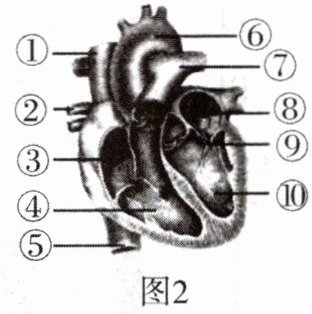 ,其中,图 2 心脏⑧⑩之间有[⑨