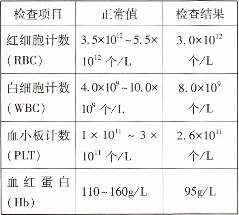 (1)从表格中的检查结果来看,异常的项目是图甲中的_________(填序号)细胞,可能患的病是_________。