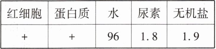 13. 表中为某人尿常规化验结果中的几项指标数据(注:“+”代表超过标准值,单位:克/100毫升)。据此判断此人肾脏中发生病变的部位是 (